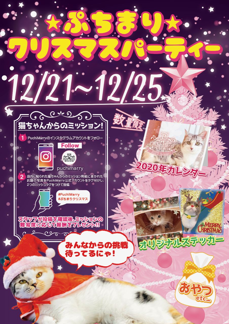 12/21(土曜日)より5日間限定で猫カフェPuchiMarry全店にてクリスマスイベントを開催致します!