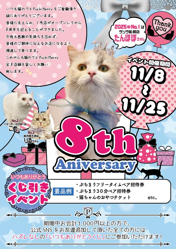 そしてこれからも猫カフェぷちまりー全8店舗を